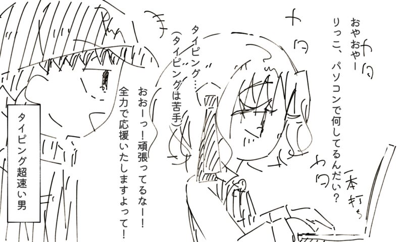 タイピング得意だと思っていたけどまだまだだったんだなと自分の作ったゲームで思い知らされました、もっと頑張りたいと思います。他の創作男女のタイピングも時間を見つけて作りたいです。