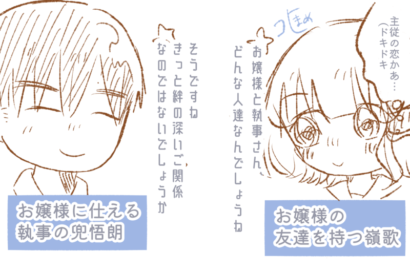 ただまだ表紙イラストと創作男女一覧表以外の絵はほとんど用意ができていない状況なので、絵のレパートリーが限りなく少ないです。これは必須ではない為焦る必要はないものですが、公開日までにもう少し新しい二人のイラストを増やせたらなと思っております^^;