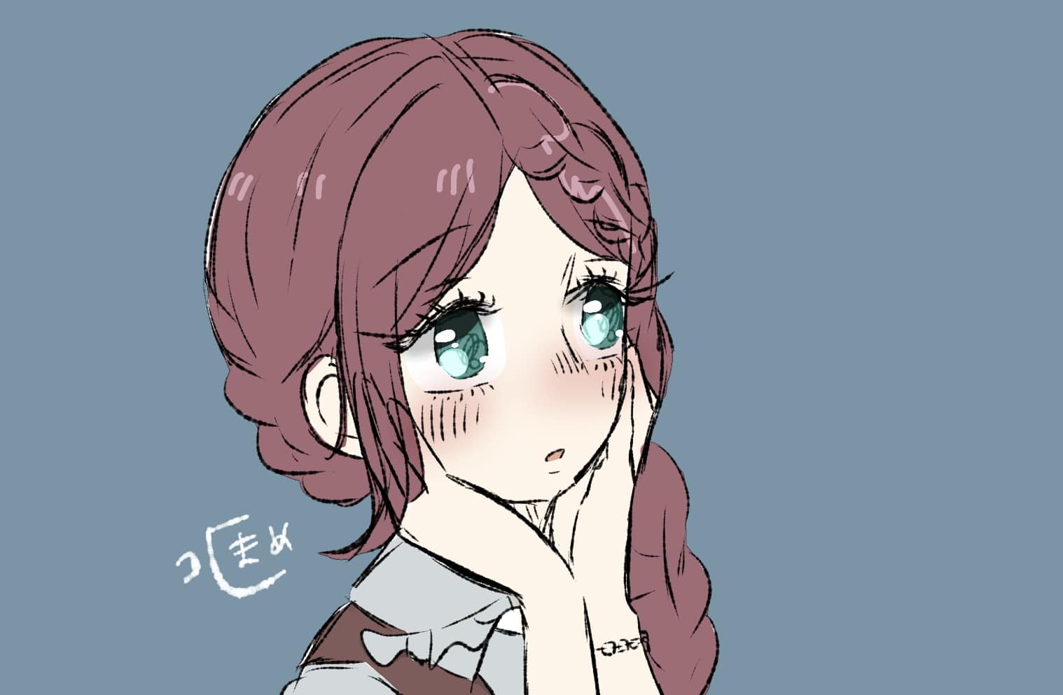 稟湖の三つ編みは結構複雑な作りになっているので、今後誰かに稟湖を描いていただく際の参考になればと作成中です。三つ編みは全部で三つあって、全て最後は合流するというヘアスタイルとなっております。